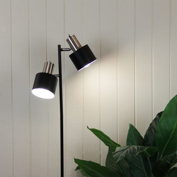 ARI twin floor lamp is ideal as a personal reading light, in a living area or beside your bed, as the toggle switches are located on the fully adjustable head of the lamp itself. The brushed chrome finish of the ARI is complemented by the matt black metalware and black cloth cord. Part of our expanding mid-century lighting range, the ARI is proving popular in modern as well as more traditional homes.