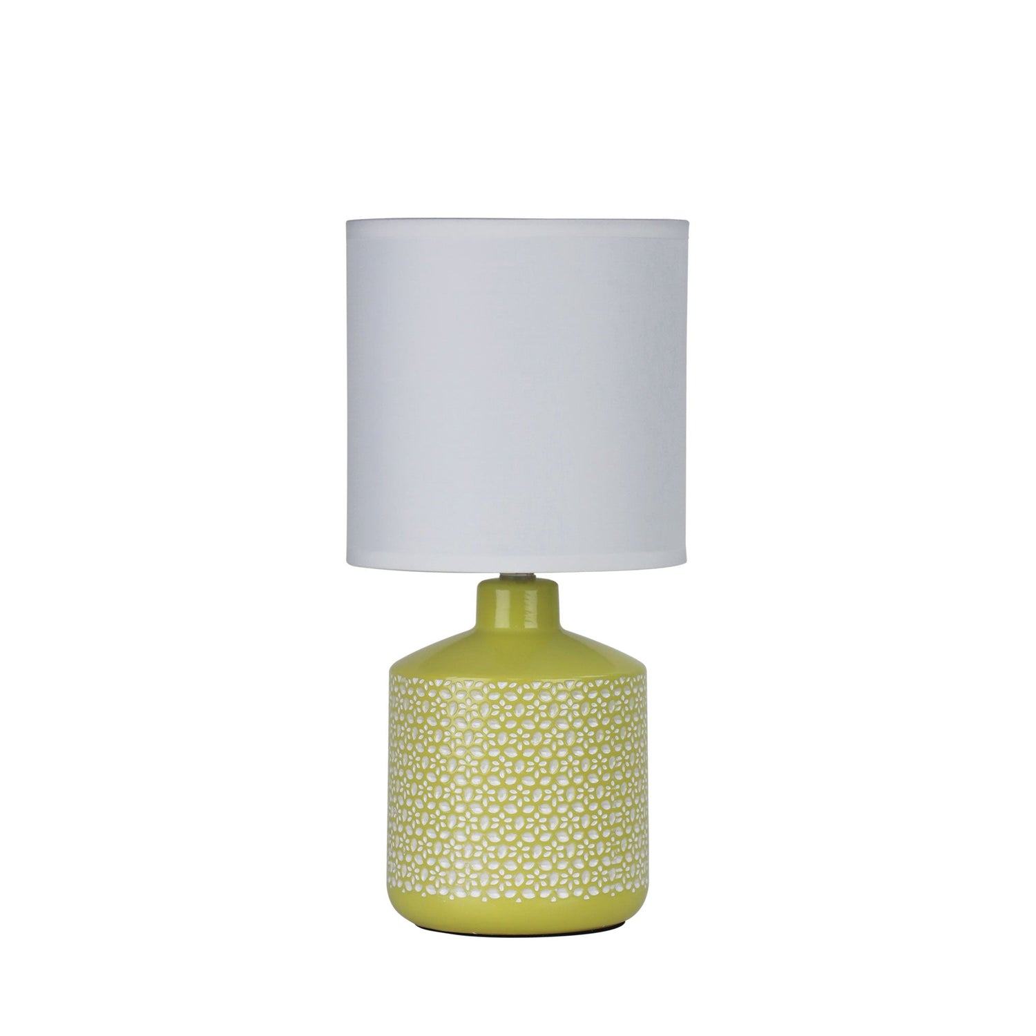 CELIA ceramic table lamp complete with fabric shade. The Celia base has an embossed geometric pattern and is supplied with an off-white poly-cotton laminated shade. Pretty little bedside, available in glossy retro colours! Switch is conveniently on the cord. This coffee is a very rich-mocha shade of brown.