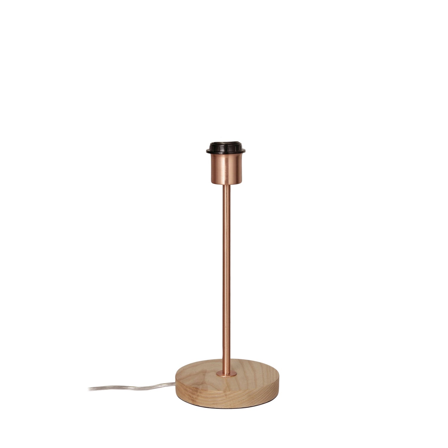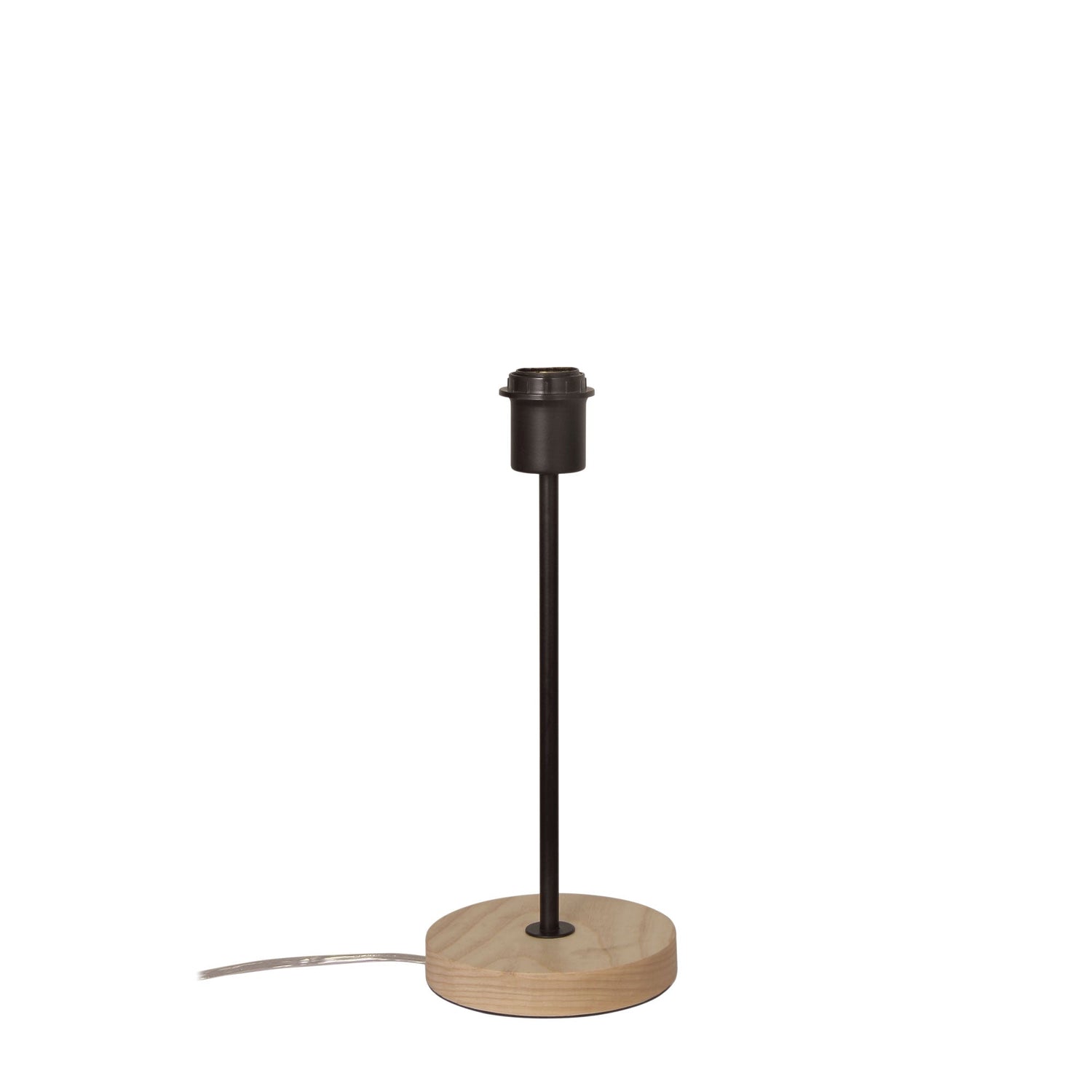 A neat little addition to our ‘Scandi’ lighting range, the FINO table lamp base features a real timber pedestal, with contrasting metal finishes. This FINO is finished in matt black, ideally combined with a black linen shade (available seperately) (43mm shade ring). The switch is conveniently located on the clear-cord.