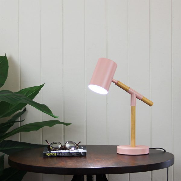 Oriel Lighting LUDO LED Pink Scandi Timber and Pink Task Lamp