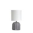The Mandy grey ceramic table lamp comes complete with a white drum shade. At 26cm tall, the Mandy is a compact and practical lamp that perfectly suits a study nook or bedside table. The on/off switch is located on the cord.