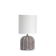 The Mandy taupe ceramic table lamp comes complete with a white drum shade. At 26cm tall, the Mandy is a compact and practical lamp that perfectly suits a study nook or bedside table. The on/off switch is located on the cord.