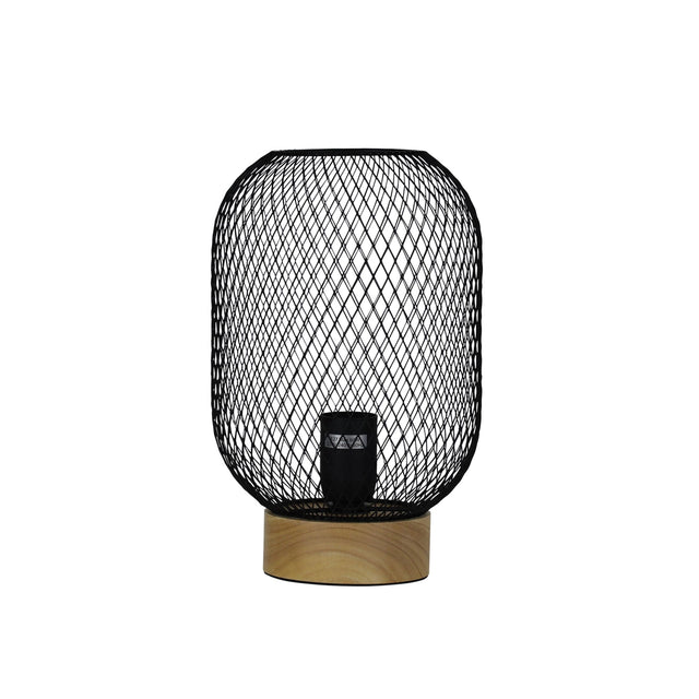 TILDA mesh table lamp features an open mesh shade upon a natural timber pedestal. Nice sized lamp (28cm tall), the switch is conveniently located on the cord. Mesh shade has an matt black finish.