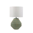 The MAYA textured ceramic table lamp comes complete with a tapered fabric shade. This designer lamp is perfect for a bedside or study nook in a coastal or hamptons styled home. The on/off switch is located on the cord.