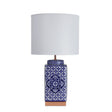 The Xian blue patterned ceramic table lamp comes complete with a white shade. At 56cm tall, the Xian is a large statement piece that can adapt to most rooms in your home. The on/off switch is located on the cord.