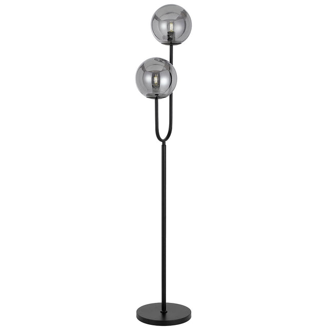 Two-level glass spheres create a bold offset and a very contemporary feel. The Eterna will show true style when added to any luxury living space. Finished in black and transparent smoke mouth-blown glass. Available as table or floor lamp.