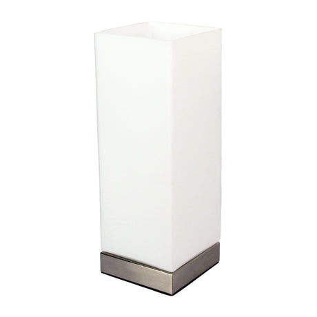 Oriel Lighting PEPE SQUARE TOUCH ON-OFF Touch Lamp Brushed Chrome and Matt Opal