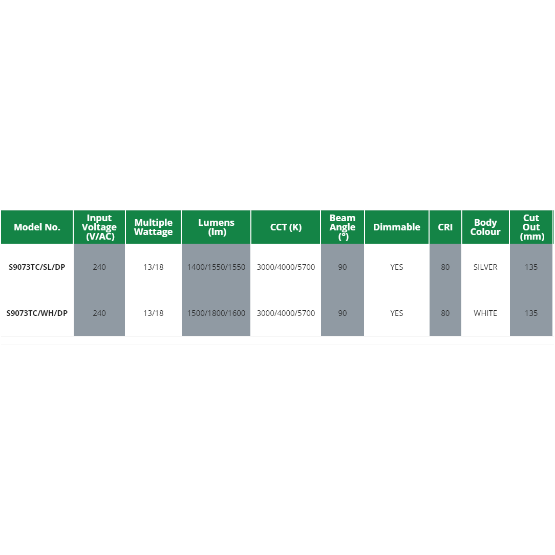 SAL Premier S9073TC/DP LED Downlight 13/18W Dimmable IP64 Tri Colour - White is backordered and will ship as soon as it is back in stock.