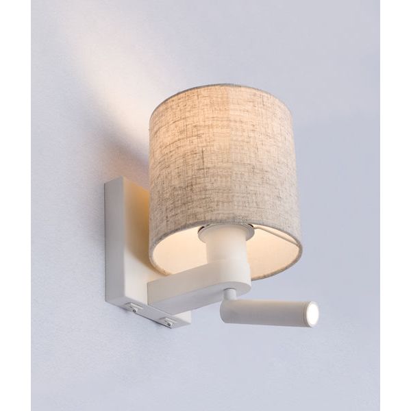 - Flaxen shade wall light, LED adjustable matt white reading light 120D, 2 switches