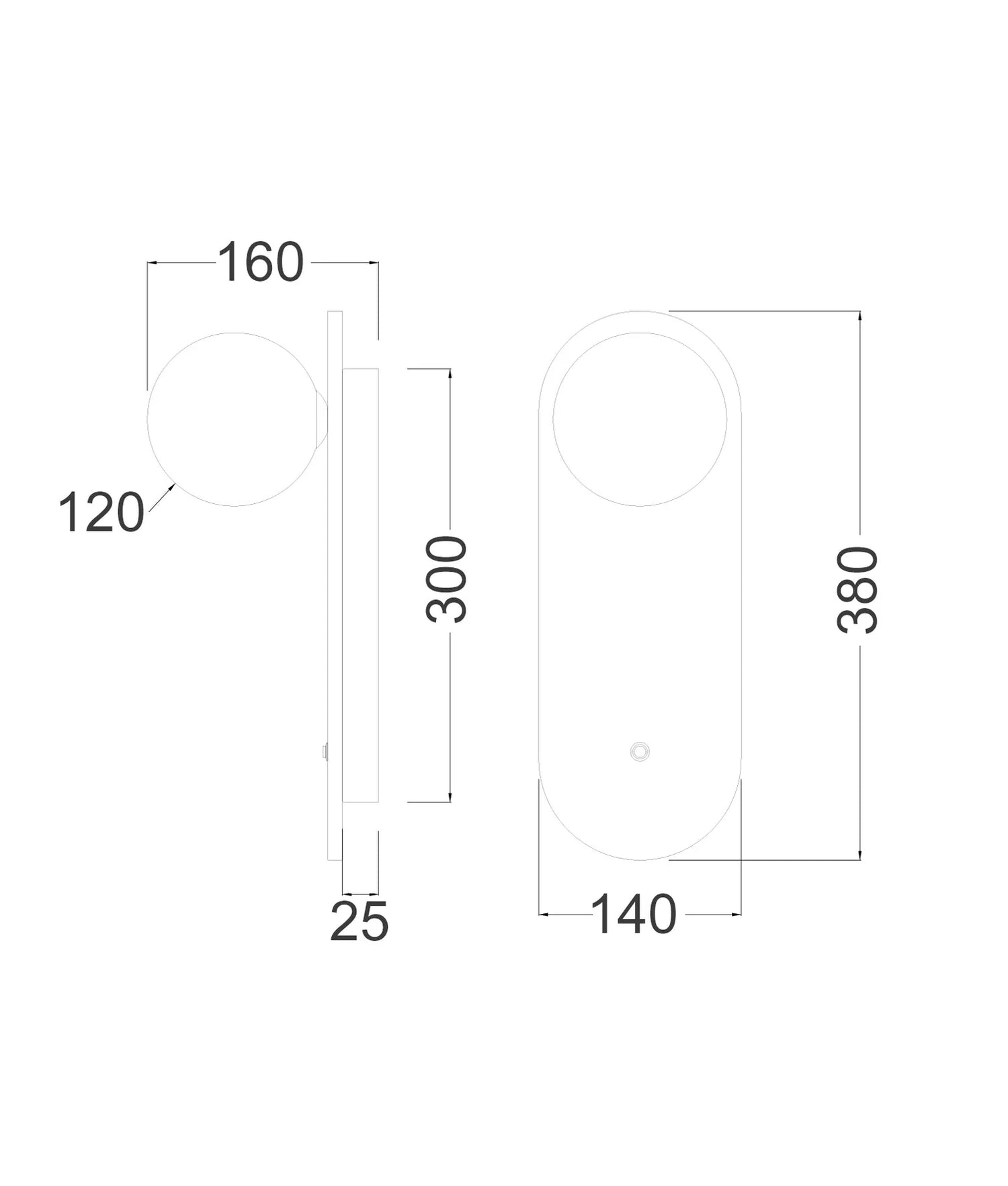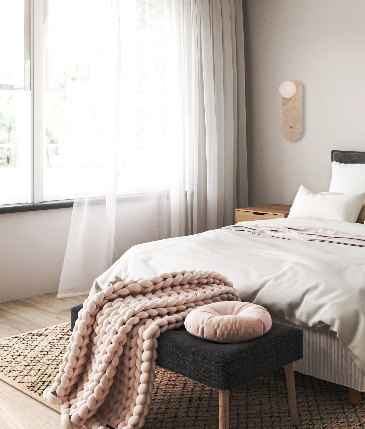 CLA Poi Interior Oblong Travertine Base with Beige Finish & Round Opal Diffuser Wall Light