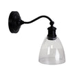 A crossover traditional / industrial wall light. The Warwick is painted in satin black, with a hand made clear bell shaped glass.