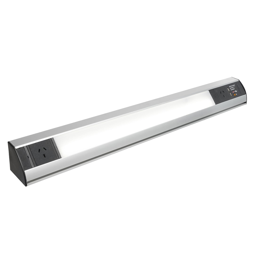 9.5W 280 lumen LED slight source. Dimmable via touch sensor switch. 2 x Australian standard power sockets. Separately switched 2 x USB2.0 outlets (2400mA Max). DIY installation, complete with 1.6m flex & plug. Ideal for office desks, meeting rooms, workshops, kitchens, study areas and home office.