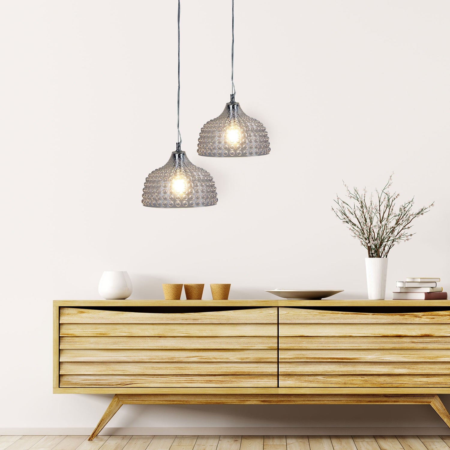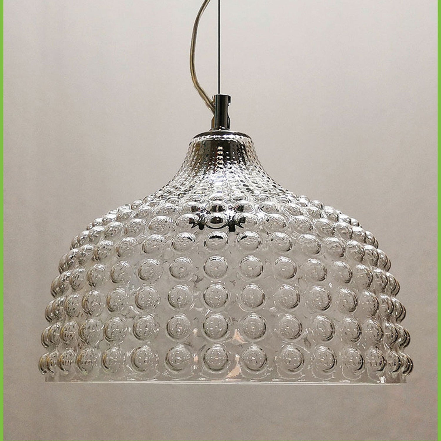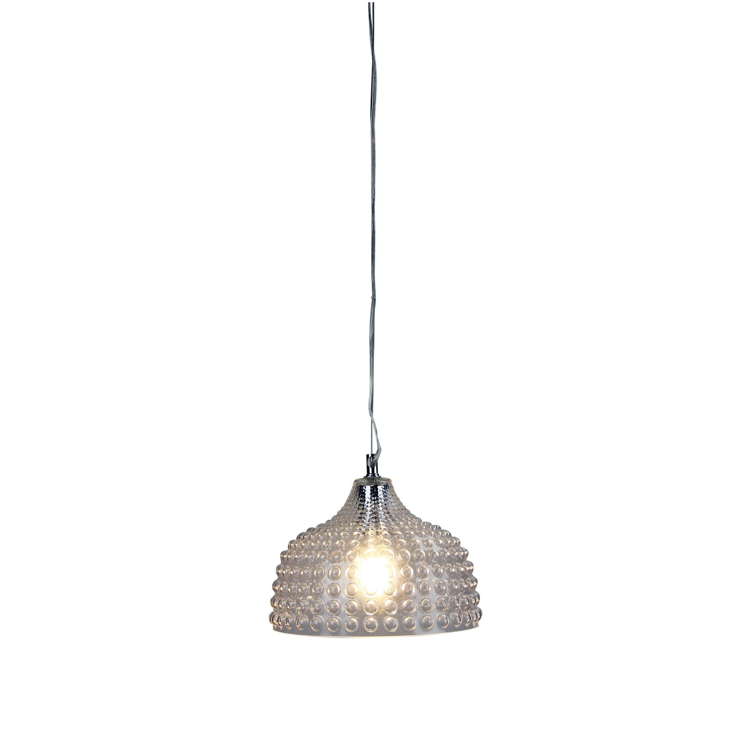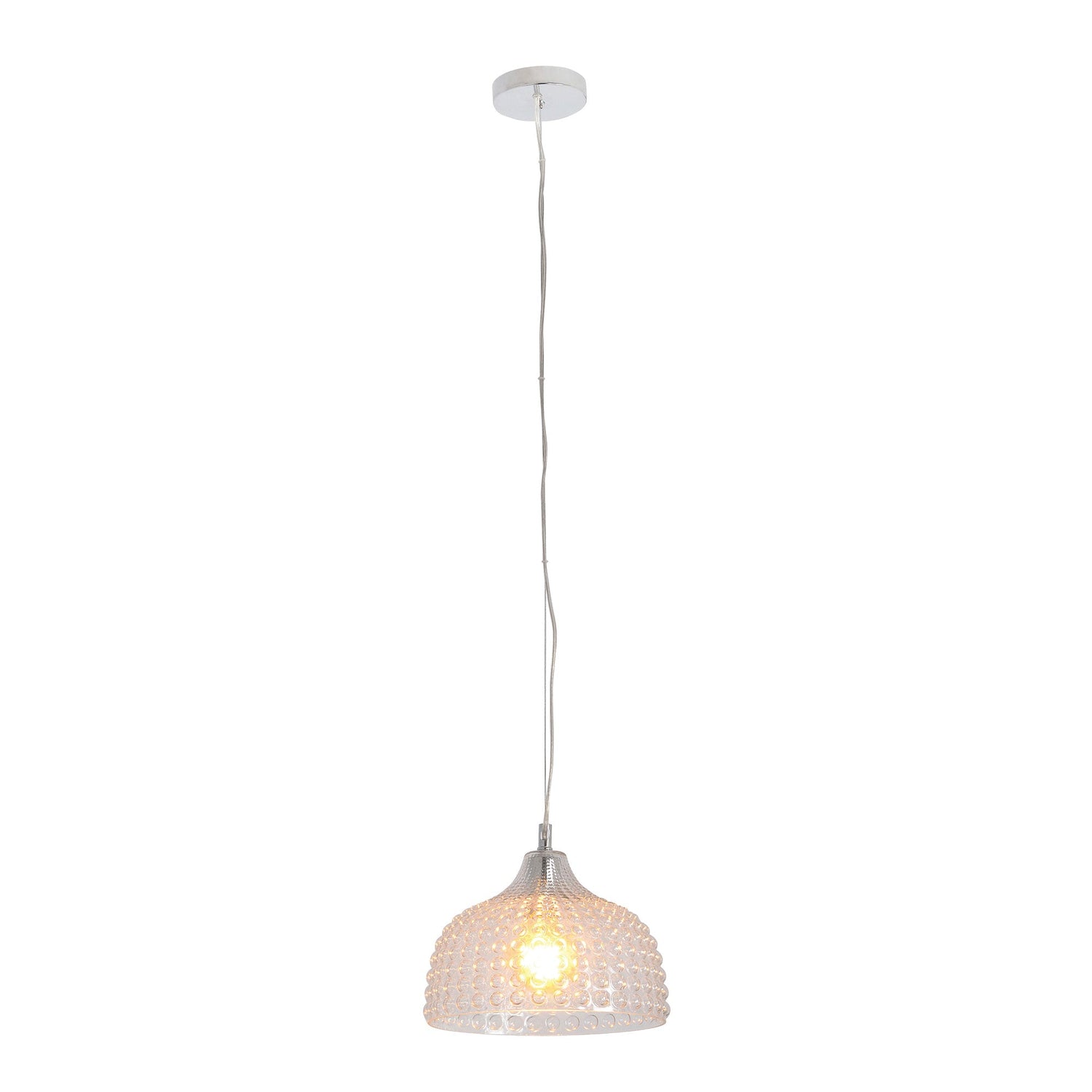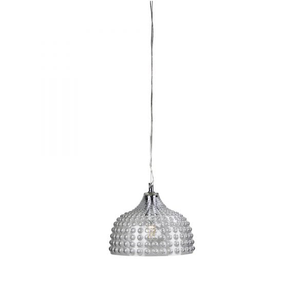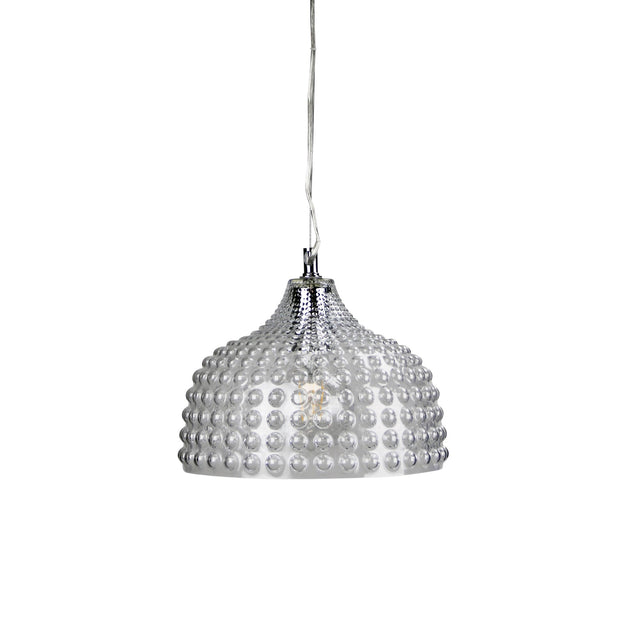 CARA.28 bubbly glass pendant would make a delightful addition to a dining or entrance foyer. Available in three glass colours (clear, amber or mint-green) all with bright chrome metalware, clear pvc cable and stainless steel support wire. Superb choice suspended over bedside tables.